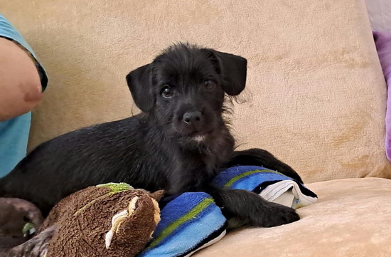 2,5 měs - zůstal tu pejsek Zoomík. Malý , střapatý , stále dobře naladěný , vítací pejsek. Přiběhne na jméno , běhá za dětmi - které miluje. A když odněkud přijdeme, Zoomík nás vítá ze všech nejvíc.Chodí ven a začal se učit chodit na vodítku.