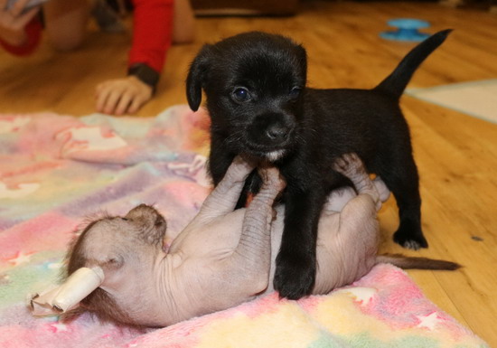 5 týdnů - umíme běhat po celém obýváku a vracet se do klece. Objevujeme nové hračky - třeba čůrací podložky se krásně trhají a s nimi se prima hraje na přetahovanou. A mazlíme se a milujeme lidi , seznamujeme se s kočkama i jinými psy...Jen to focení nám moc nejde....