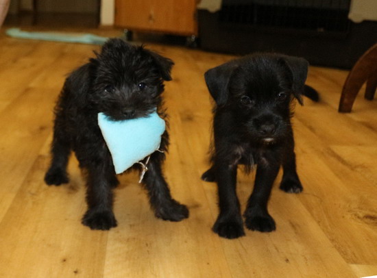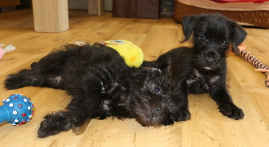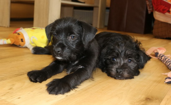 9 týdnů - zbyli jsme tu dva kluci . Dva chlupatí černoušci. Chodíme ven a pilně se učíme být čistotní . Venku se nám líbí , je tam spoustu prostoru ke hrám. A stále vyhlížíme novou rodinu , kde nás budou mít rádi.